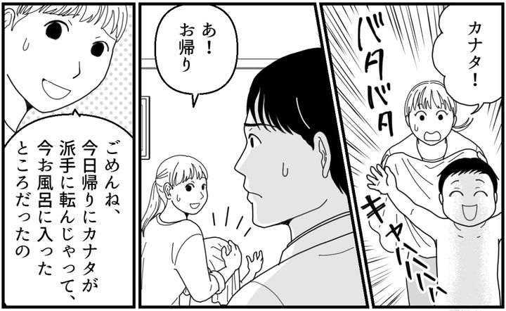 俺(タクヤ)は、妻のエリと2才の息子・カナタを育てている。夫婦だけの生活に子どもが加わるとなかなか大変だ。さらにエリが職場復帰を果たしてから、わが家は大忙しの日々。できる人ができることをやっていかないと回らない状況だ。だから俺はできるだけエリの負担を軽くしようと家事を頑張っている。俺は家事が好きだし得意な方だ。男が家事を苦手とする時代はもう古い。毎朝、俺は朝食を作り洗濯をして出かける。きっとエリも助かっているはずだ。