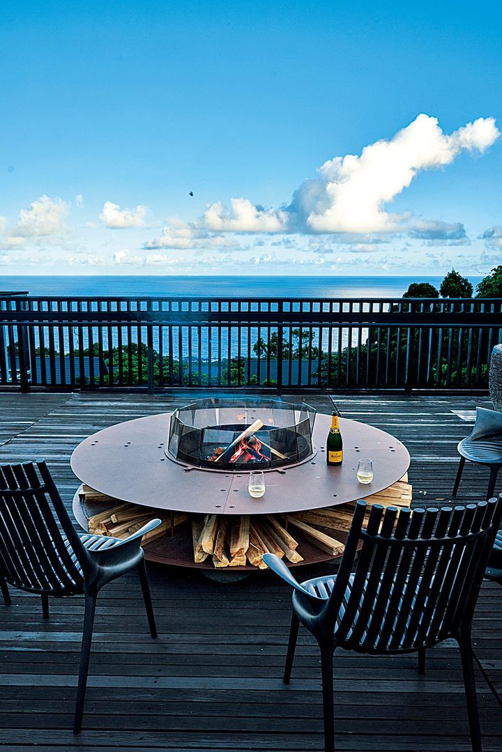 プールサイドのデッキに設けられたファイヤーピットでは夕方から無料の食前酒とドリンクを楽しめます。 (C) HIROSHI ABE