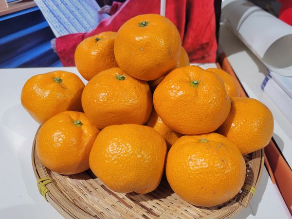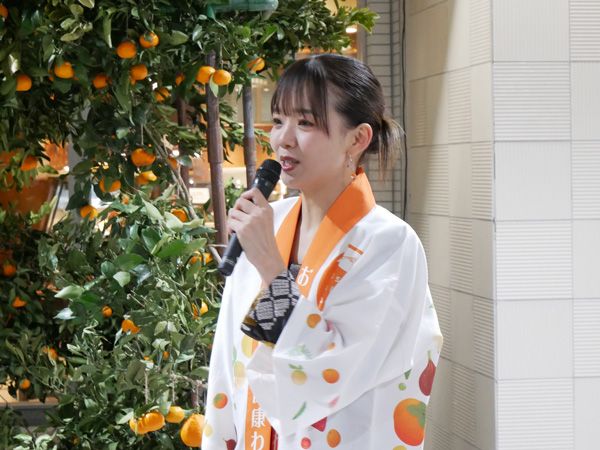 さらに、「有田・下津地域の石積み階段園みかんシステム」の世界農業遺産認定を記念して、この日の朝、南紀白浜空港⇒羽田便の空輸で運んだ「朝採れみかん」のプレゼントも行われました。