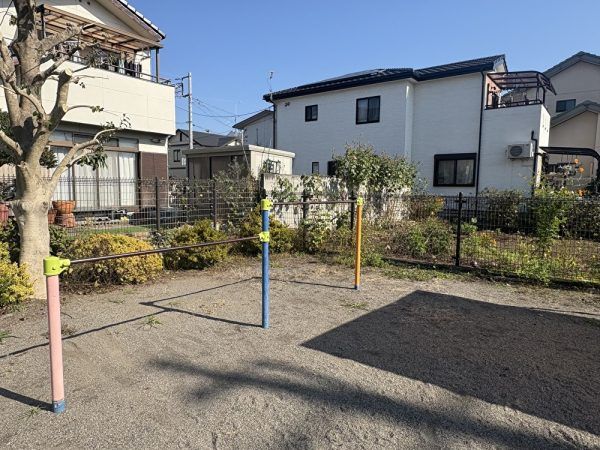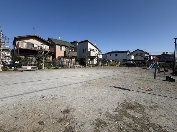 住宅街の中にある公園なのですが広々としています。遊具は多くはありませんが、その分走り回る事ができるのが嬉しいところです。