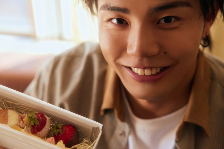 今日の撮影は北人さんと一緒だったんですけど、サプライズで手作りチョコをもらってびっくりしました!素直にうれしかったです♪