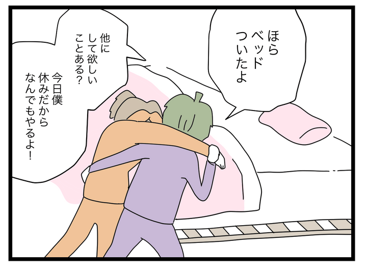 家事も育児もまともに任せられない状況のなか、妻はある日突然ギックリ腰になってしまいます。しかし、夫は妻が起き上がれず辛そうにしているのを目の前にしても黙って見ているだけ。どうしてほしいのか細かく指示してくれないと動けないと言う夫に、ベッドまで運んでほしいと伝えたら、腰の痛みが増してしまいそうな方法で妻を運ぼうとします。