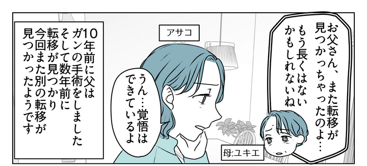 10年前にガンの手術をして、数年前、そして今回また転移が見つかった父。父本人も私たち家族も、もう父は長くはないかもしれないという覚悟ができています。