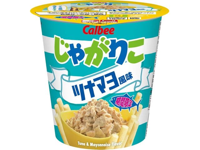 ●コンビニおにぎりの定番フレーバー「ツナマヨ」を、「じゃがりこ」で再現しました。「ツナマヨ」をイメージした、ツナのうま味とほんのりマヨの酸味が特長です。「ツナマヨ」風味フレークを使用し、じゃがいもの風味を引き立て、後を引く味わいに仕上げました。 ●パッケージは、味名とツナの写真を中心に配置し、ツナマヨ風味がひと目で伝わるデザインです。鮮やかな水色と白のボーダー柄で爽やかな“海”のイメージを表現し、売り場でも目を引く印象に仕上げました。