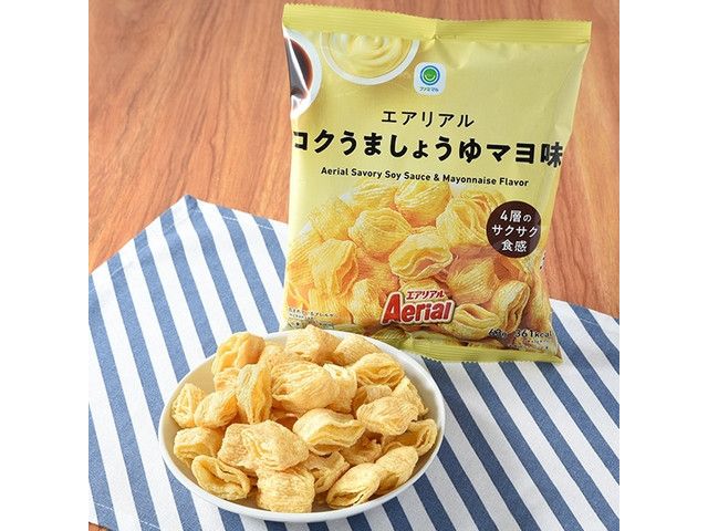 4層形状のコーンスナックです。醤油の香ばしさとマヨネーズのコクを感じる味わいです。