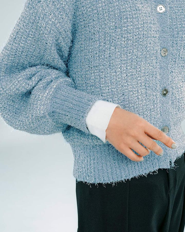 ②絶妙なキレイ色が顔映えを約束「ニットカーディガン」