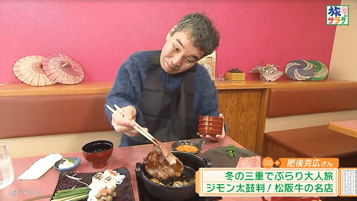 そんな肥後は、ロケで三重県へ。伊賀市では体験型牧場でスイーツ作りを楽しみ、松阪市では寺門ジモンおすすめの松阪牛専門店で“肉の芸術品”を堪能。「2年前にお参りさせていただいてから道が開けていった」ということで、伊勢神宮と猿田彦神社へお礼参りもした。