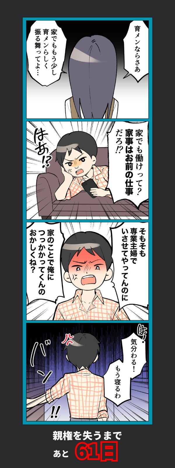 3. 「俺につっかかってくんのおかしくね?」妻の本音に“上から返し”…夫の一言が決定打に【100日後に親権を失う育メン 第39話】