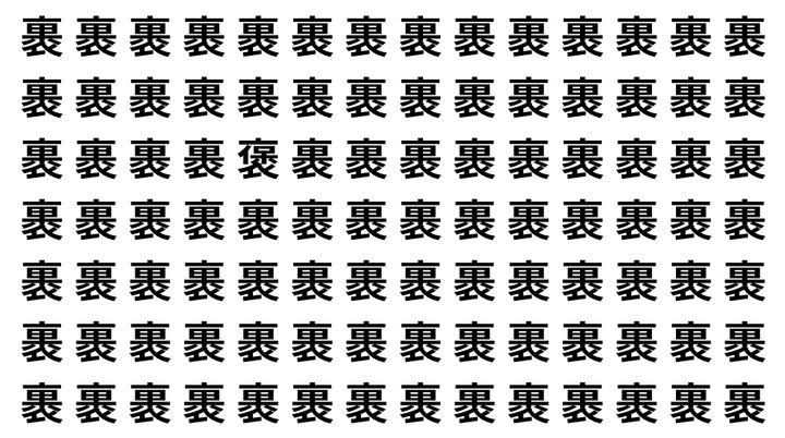 たくさんの「裹」の中に、よく似た別の漢字が1文字だけ隠れています。