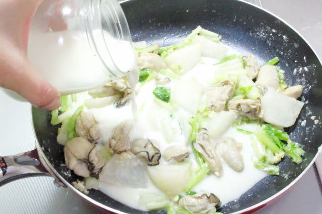 3. 【オーブンでの焼き不要】フライパン一つで「かぶと牡蠣のグラタン風」作ってみた!牡蠣がぷっくりクリ~ミ~♡