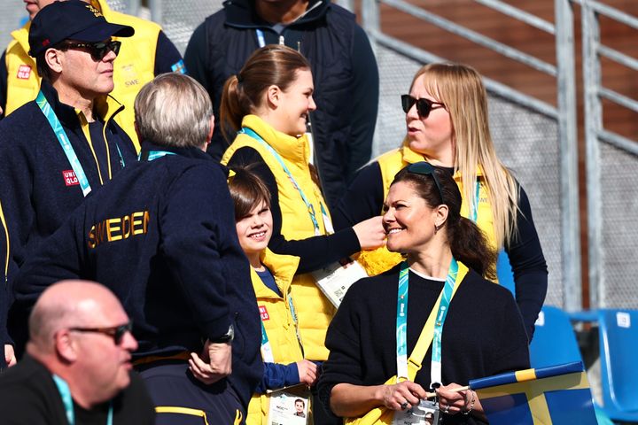 クロスカントリースキー女子の50キロメートルマススタートを観戦しているのは、スウェーデン王室のメンバー、ダニエル殿下、オスカル王子、エステル王女、ヴィクトリア皇太子の4名です。