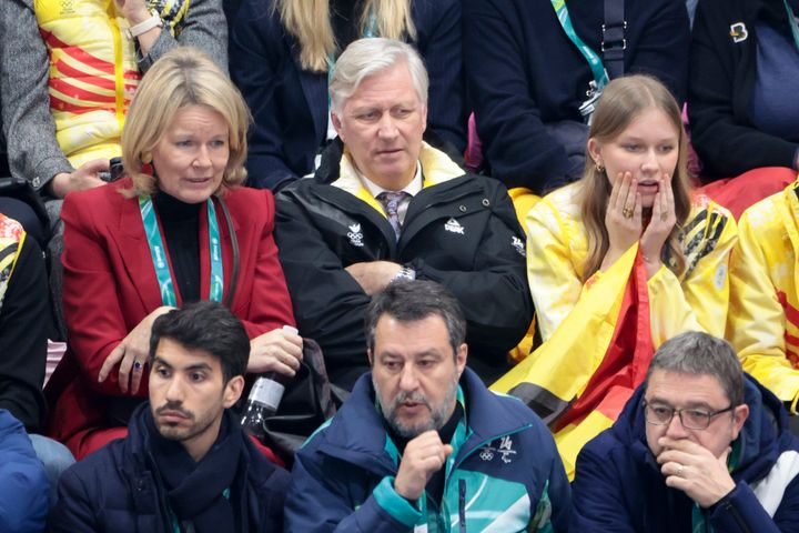 ベルギーのマティルド王妃とフィリップ国王、エレオノール王女が、揃ってVIP席からスピードスケートのショートトラックの試合の行方を心配そうに見守っています。