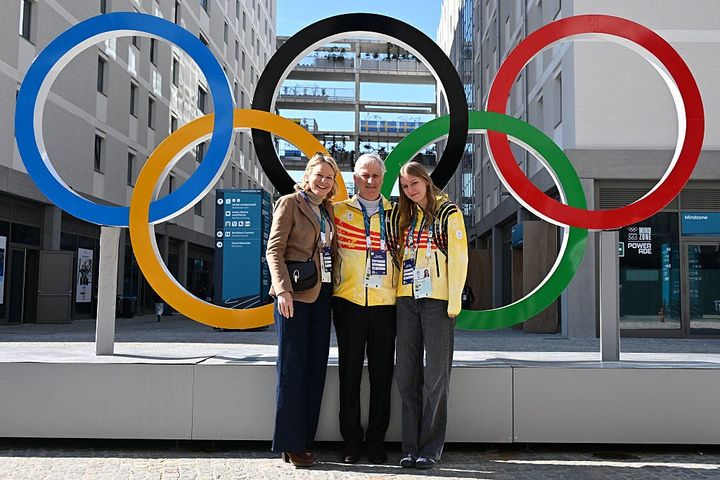 ベルギーのマティルド王妃&フィリップ国王、2人の第4子エレオノール王女の親子3人が、選手村を訪問。オリンピックのシンボルの前で仲良く寄り添い、報道陣のカメラに向けポーズをとりました。