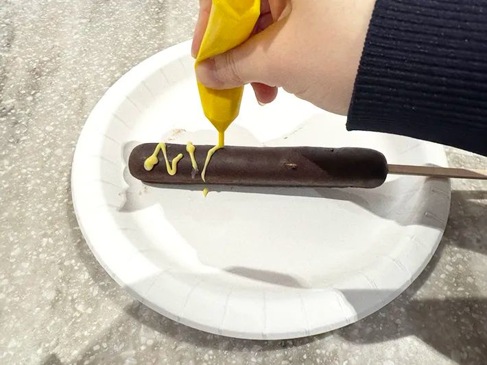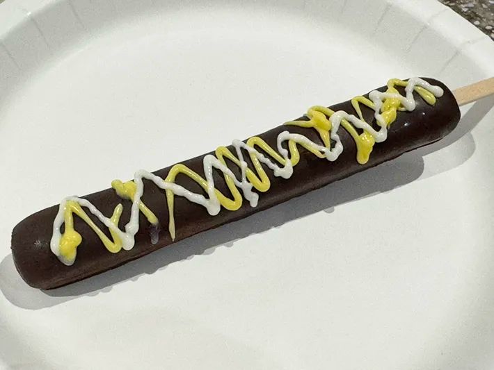 筆者がアレンジした『チョコバット』は、なんだかフランクフルトのような色合いになりました。