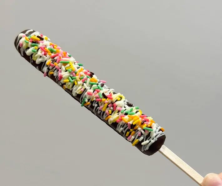 家に余っていたチョコスプレーをかけてみたところ、今度はチョコバナナのような見た目になりましたよ!