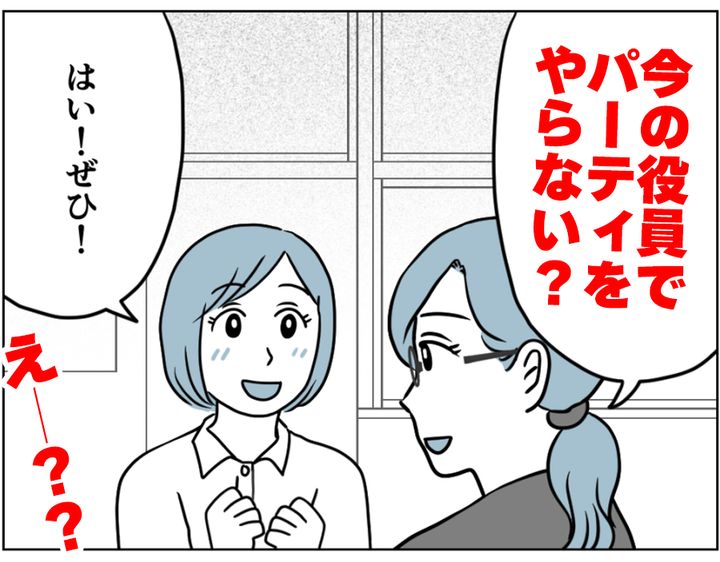 今回行われるパーティーはPTAの仕事ではありません。あえて言うなら「PTA役員の慰労会」のようなもの。学校で行うとはいえ、全児童、保護者たちが参加できるわけではなく、入れるのは限られたPTAの役員と、その子どもたちだけ。あまり平等とはいえないのではないでしょうか。
