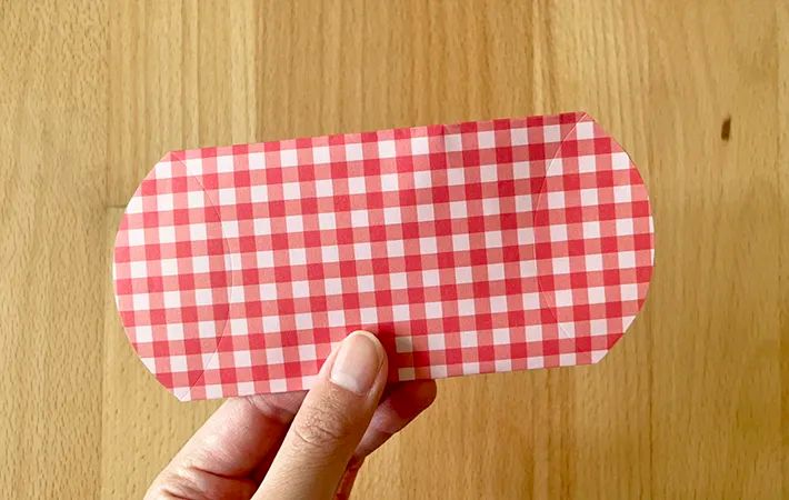 折り込んだ両端は、シールなどで留めずとも開くことなく、プレゼントを入れられます。