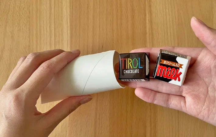 キッチンペーパーの芯を使ったギフトボックスは、1分もかからずに完成!