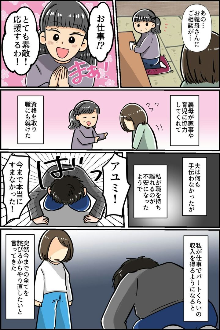 ところが、主人公の行動に危機感を覚えたのか、急に今までのことを謝罪した夫。今までされてきたことを考えると、とうてい許すことはできません。