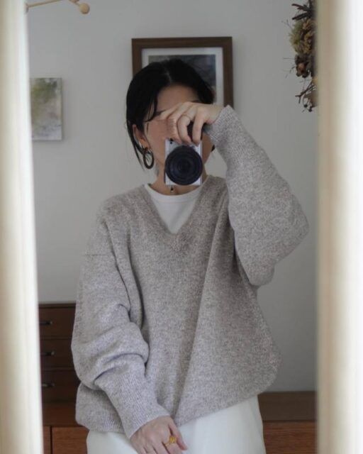 【2026年2月13日のコーデ】Vネックニット×クルーネックで大人カジュアルに!