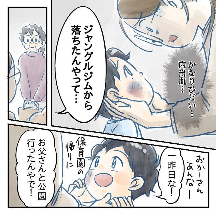 2. 【漫画】夫と公園に行った息子、ジャングルジムから落ちてケガ【アナタの大丈夫がキライ Vol.17】