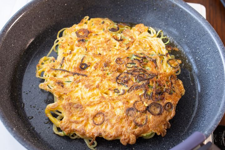 焼きそばが1袋だけ余ったらこれ!混ぜて焼くだけ「ネギ入りチーズオムそば」