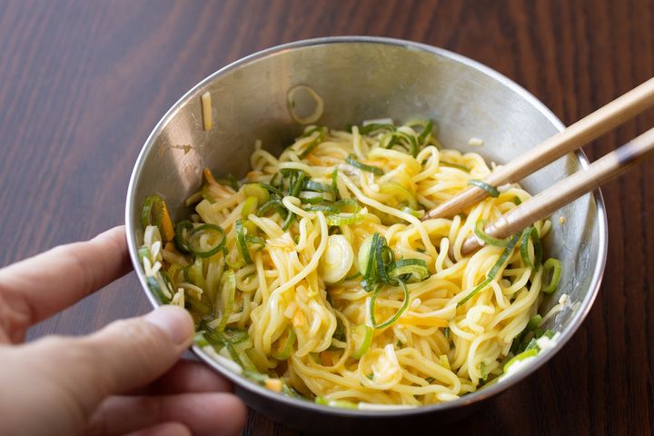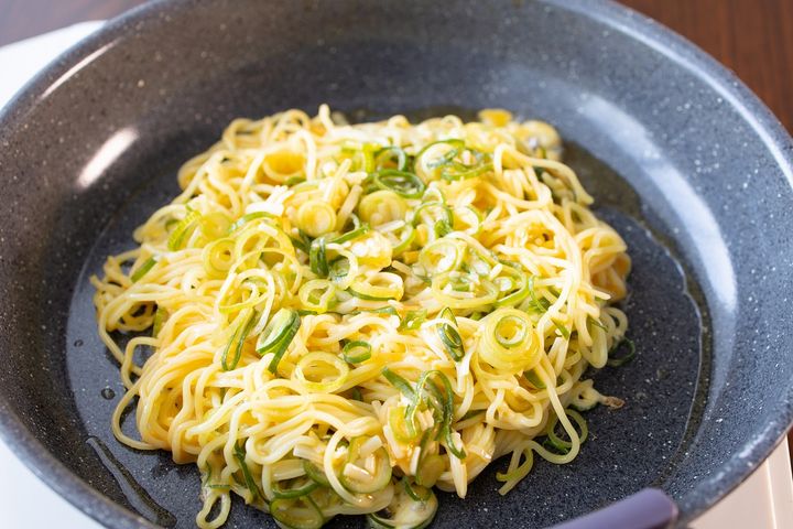 3. 焼きそばが1袋だけ余ったらこれ!混ぜて焼くだけ「ネギ入りチーズオムそば」