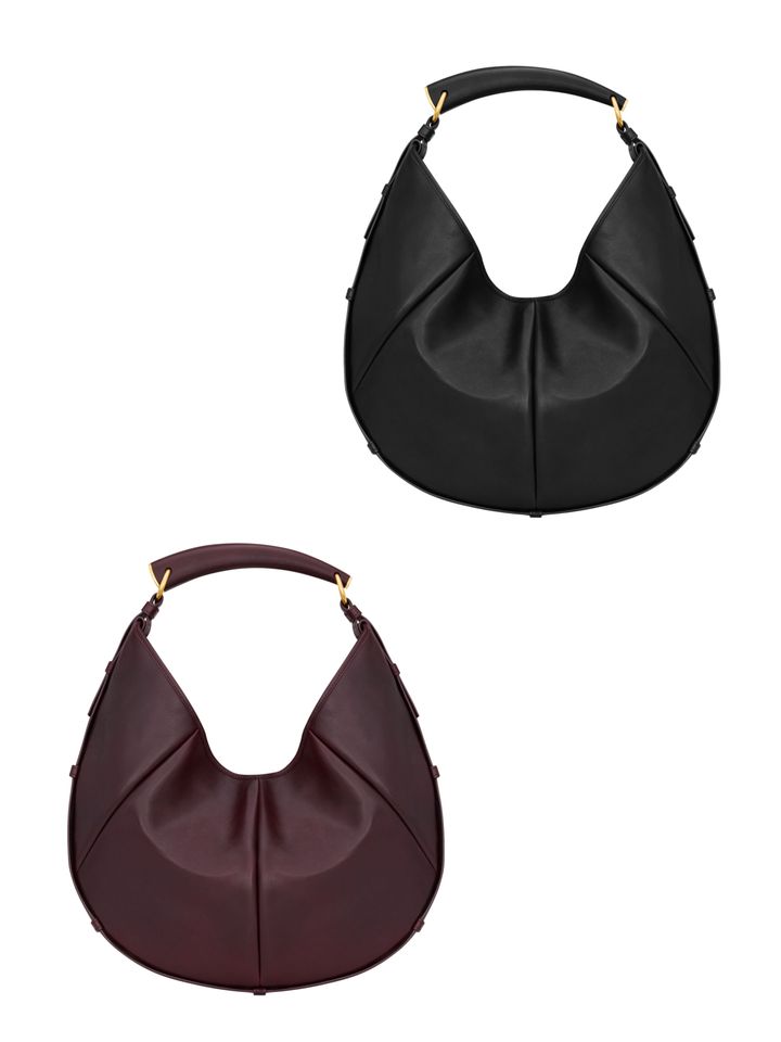 「サンローラン」からは、2002年春夏コレクションで誕生したアイコニックな“モンバサ”バッグが、今シーズン再びカムバック。オリジナルのムードを受け継ぎながら現代的に再解釈された新作は、ラージ、ミディアム、スモールの3サイズ展開。リラックス感のあるショルダーキャリーと自然なドレープが洗練されたたたずまいを演出する。ラージとミディアムにはファスナー付きインナーポケットとスエードライニングを備える。カラーはブラック、ルージュカベルネ、サンタルの3色でラインナップ。