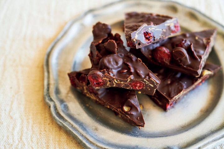 湯せんで溶かしたチョコに材料を混ぜ、冷やせば完成。さわやかなレモンの香りとほろ苦さが、甘いチョコにほどよいアクセントを添えてくれます。切り分けやすく、ばらまき用にも重宝しますよ♪