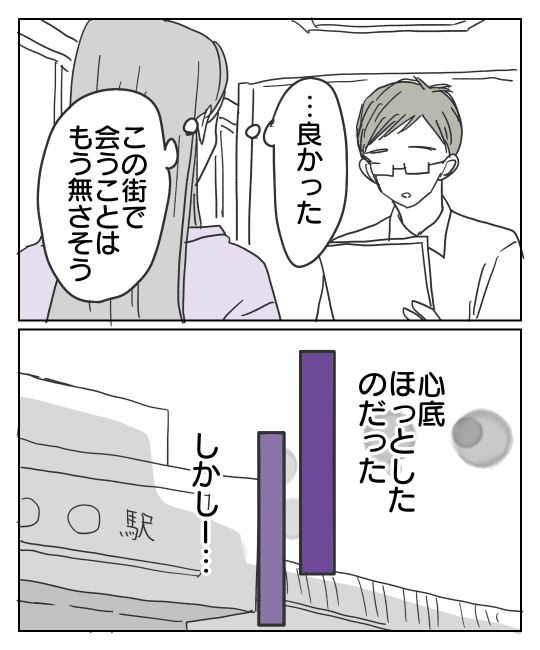 最終的にアキト夫婦がどうなったかのか、真相は藪の中…。転勤になったアキトに会う可能性は低いとはいえ、その後もトラウマがアサミを苦しめます。たまたま最低な男性と出会ってしまったアサミの幸せを願わずにいられません…!