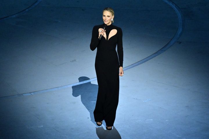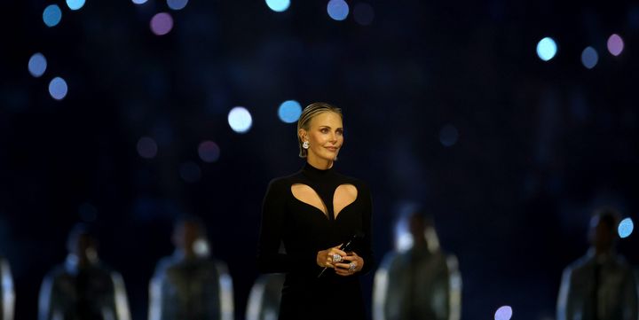 国連平和大使を務めるシャーリーズも登場し、ネルソン・マンデラの言葉を引用したスピーチで平和を訴えかけました。着用していたのは、胸元のカットアウトが目を引く「ヴェルサーチェ」のドレスです。