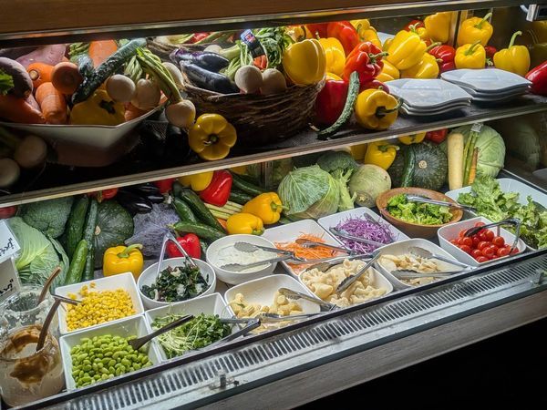 いいえ、何回でもおかわりOKです。と、なんとも神返答。エッエエエーーー!?この物価高で、新鮮サラダバーってどんどん絶滅していっているというのに、すごすぎやしませんか?
