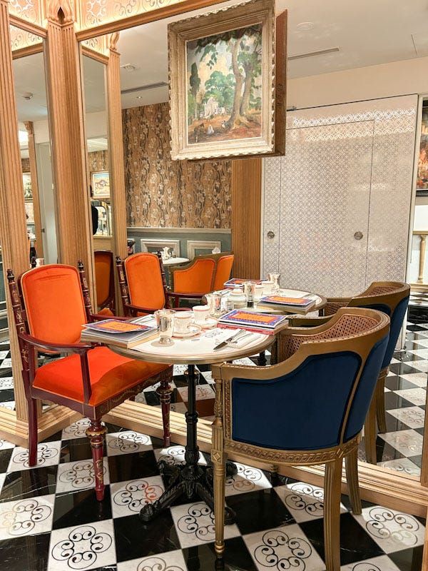 そして上階へと続く、モロッコにインスパイアされたアイアンワークが美しい階段を上ると、2階は「1910」、3階は「Marrakech(マラケシュ)」と名づけられた趣の異なるコーヒールームが。デザインの異なるアンティーク調のチェアが並び、まるで宮殿に招かれたかのような感覚に陥る。