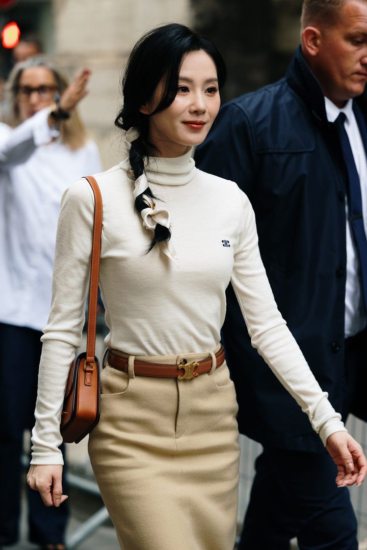 保科さん:タートルなど襟が高い服は“顎先を削るいい小道具”なんです(笑)。さらにヘアも上にポイントを持ってくると小顔効果が出ます。お団子なら耳のラインのミドル〜やや高め、後れ毛はタイトにして引き算を。ほっこりリラクシーになりすぎないよう、艶のある質感を意識するとスタイリッシュにまとまりますよ。