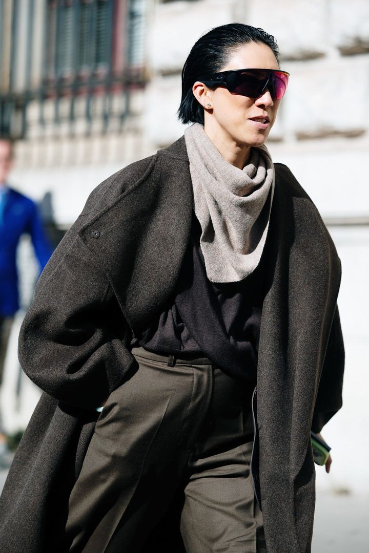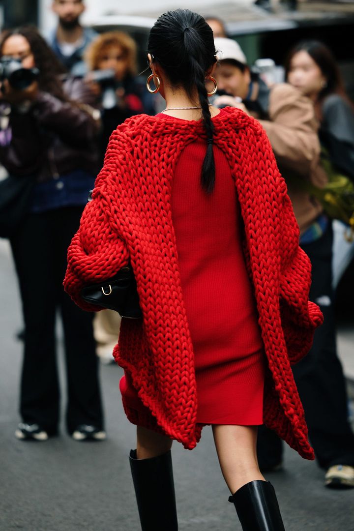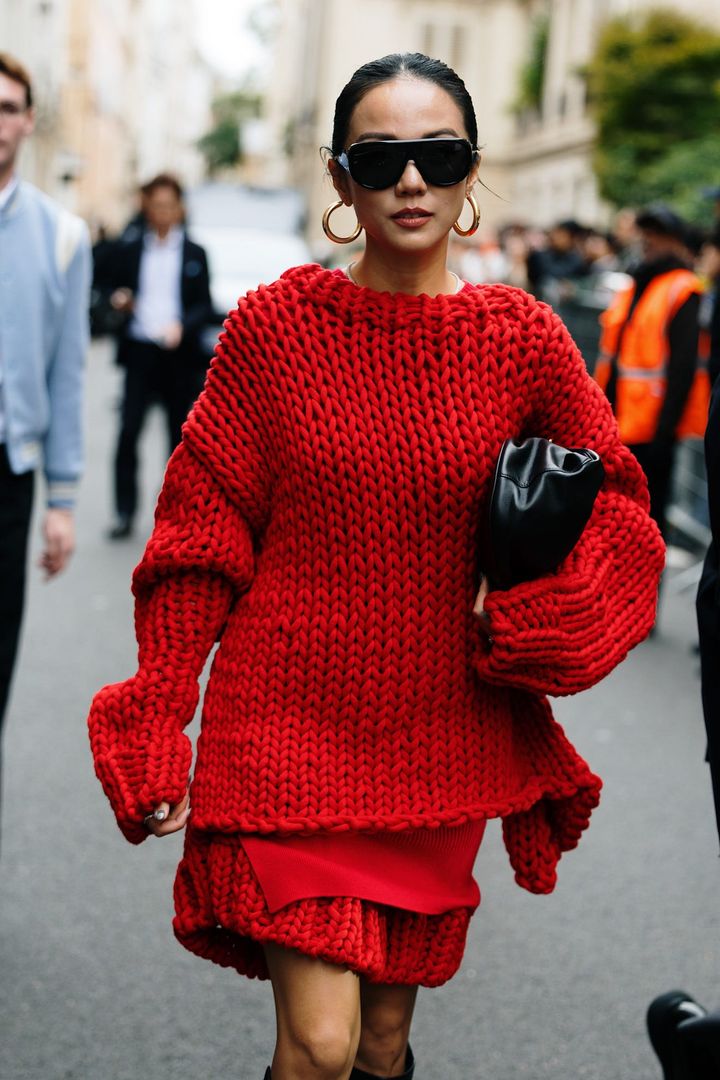 エディター:今季も街ではさまざまなニットスタイルが見られますね。ファッションウィーク中のスナップをざっと見てみると、全体的に“ゆるっ”としたシルエットが多い印象です。