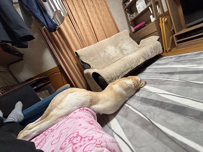 タレ目ラブ(@eru0902)さんは、一緒に暮らす愛犬・エルくんの、驚きの姿をXに投稿しました。