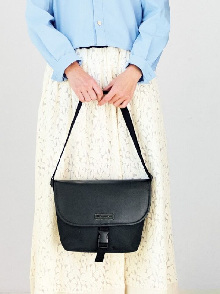 フラップがレザー調で、ほどよい光沢感がポイント。大人世代の装いにマッチします。持ちやすく収納上手な設計で、デイリー使いにぴったり!