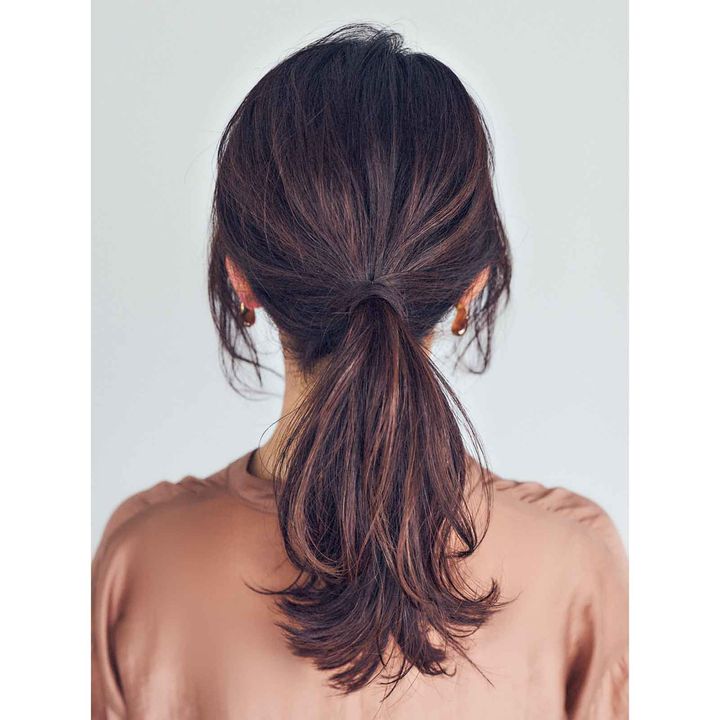 洗練された「コッコレイヤー」はエザキさんオリジナル技。鶏のトサカに当たる部分に独立した段差を入れるからコッコと命名。髪全体にたっぷり入れたレイヤーが重なり合って、ふんわり華やぐ仕上がりに。結んだ時にも空気感が。