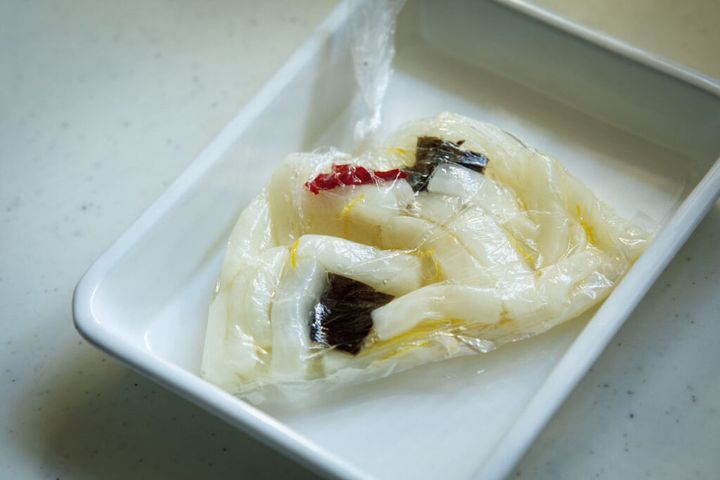 袋の中の空気を抜いて口を閉じ、室温で1日漬けたらでき上がり。翌日以降は冷蔵庫で保存する。冷蔵で約2週間保存可能。