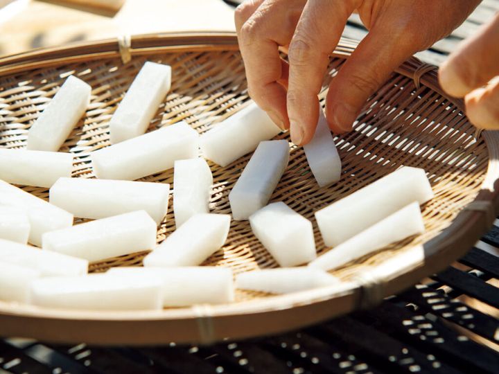 みずみずしい大根が手に入ったら、冬の手仕事に〈ゆず大根〉を。工程はシンプルですが、切って、干して、待つ。そのひとつひとつを丁寧に重ねていきます。