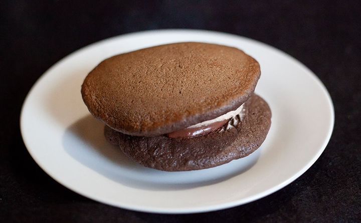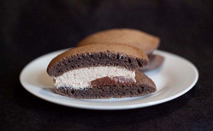 断面を見ると、生地に厚みがあるものの、クリームもたっぷり入っていることがよくわかります。ちなみに淡い色のやつがチョコクリームで、色の濃いやつがガナッシュです。
