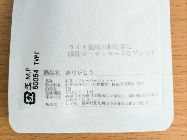 珍しい「和紅茶」のティーバッグも売られています。(2つ入400円)1つで2人分淹れられます。いろんなフレーバーがあって、ネーミングされているのがユニークですね。香りをかいで選ぶことができます。今回は「ありがとう」というライチ風味の紅茶を買ってみました。ふわりとしたライチのほんのり甘い香り。とってもいい香りなのでおすすめです。