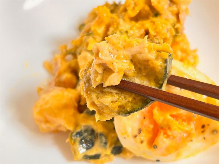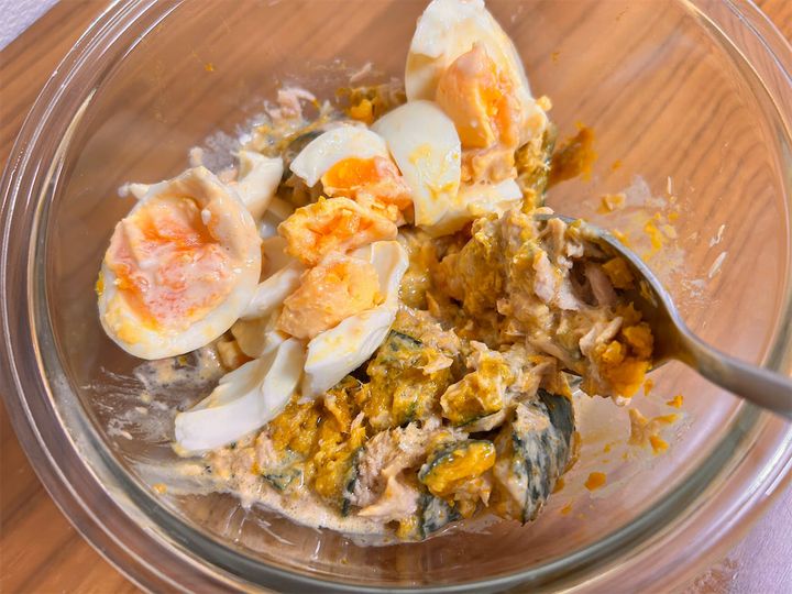 3. 【かぼちゃはツナマヨに合わせろ!】卵ゴロゴロ「かぼちゃサラダ」作ってみた!オイル活用でしょっぱコク甘♡