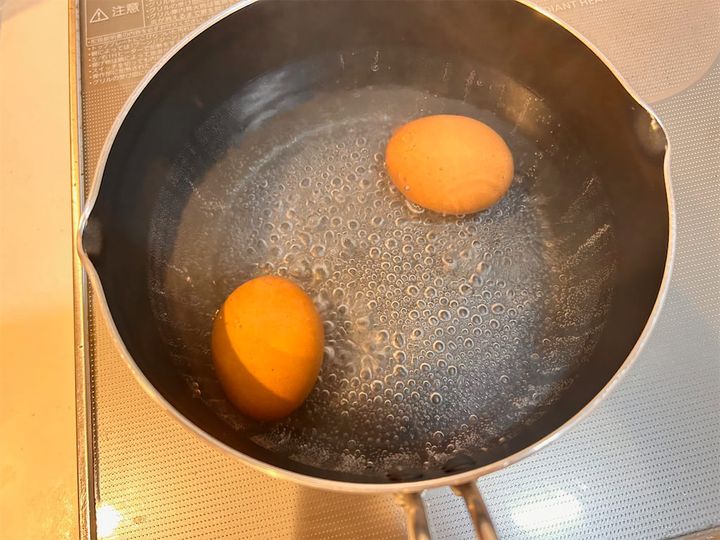半熟に仕上げたいので、約7分茹でました。