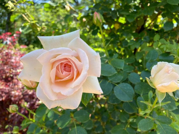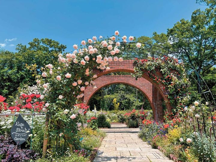 「カラーリーフガーデン~いろはの庭~」は、バラや宿根草、樹木などが引き立て合い、四季を通じて楽しめる。ローズ&シュラブガーデンの、斑(ふ)入り葉のバラが人気。