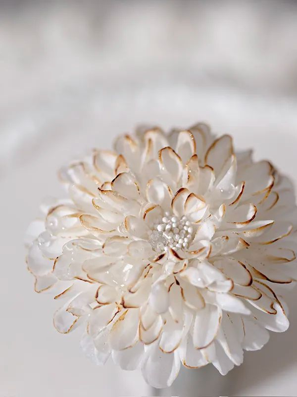 透き通るような白色の花びらが何重にもなっている、ダリアの花。驚くことにこれは、すべて砂糖でできているのです。