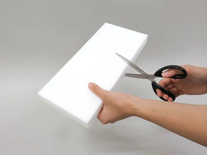 以下は同社の『BMSメラミンスポンジ 超特大』を切っているところです。