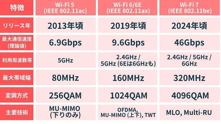 現在は次世代の「Wi-Fi 7」への移行期でもあるため、3年程度を目安にサポート状況を確認することが推奨されます。
