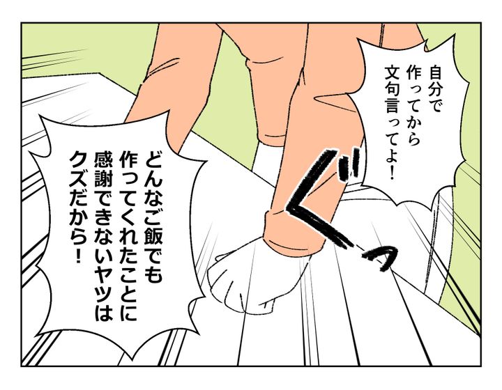 家事の中でも、とくに負担が大きいのが毎日の食事作り。献立を考え、買い物をして、調理して……食べ終われば後片付けまで待っています。そんな手間ひまかけた食事を否定されたら……? 誰だって腹が立ちますよね。