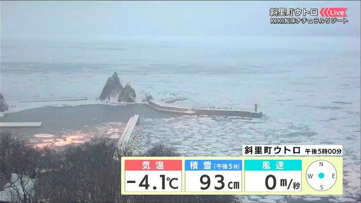 背景は13日午後5時ごろのウトロ情報カメラ